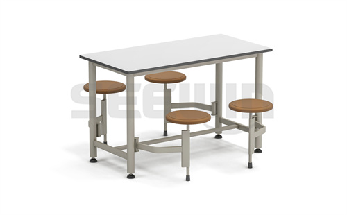 SEEWIN詩敏教學設備西雅圖系列餐桌優質鋼框架、桌腿帶噴塑,防火板桌面,耐腐蝕性強,穩定耐用。就餐座位可伸縮收納,節省收納空間。