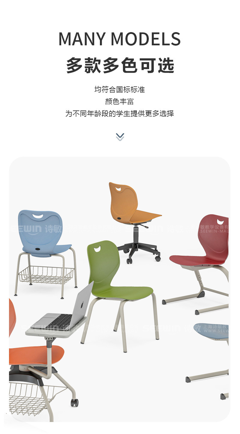 SEEWIN詩敏學校家具格物系列學生課椅采用ABS注塑一次成型;