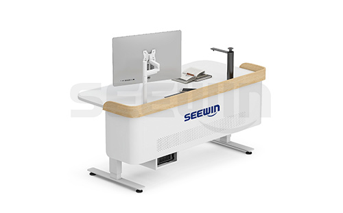 SEEWIN詩敏教學設備科威特系列教師講臺產品臺面采用 E0 級MDF板,整體光滑且全圓角處理,一鍵電動升降,契合不同教學方式,專為多媒體教室設計,可集成中控、顯示等功能于一體,是老師課堂教學的好幫手。