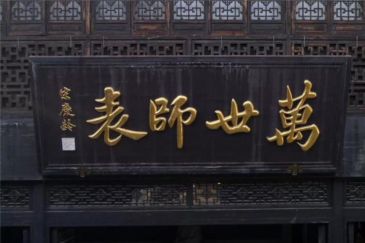挽聯(lián)在飄,上面寫著"行知先生千古",旁邊則是宋慶齡親筆題寫的四個(gè)蒼勁大字——"萬世師表"。