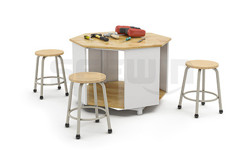 SEEWIN詩敏教學設備曲尺系列無人機教室木工桌產品桌面采用橡膠木指接板,造型簡潔大方,堅固耐用,下層桌面可提供儲物空間,存放上課工具,適合無人機教室使用。
