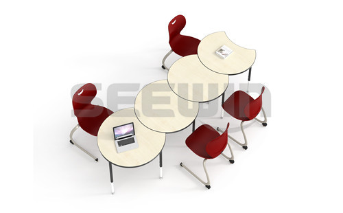 SEEWIN詩敏教學設(shè)備弗萊徹系列智慧教室組合桌采用 E0 級 MFC 板,選材健康安全。優(yōu)質(zhì)鋼架焊接,堅固耐用。以小組為單位活動的課程增多,組合桌椅增加互動性,體現(xiàn)小組成員的團結(jié)性及個體的獨立性。獨立使用和組合使用,帶有升降功能,可根據(jù)身高調(diào)節(jié)。