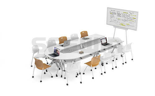 SEEWIN詩(shī)敏教學(xué)設(shè)備芬格系列智慧教室組合桌產(chǎn)品采用E0級(jí)MFC板,桌面四角倒圓,搭配旋轉(zhuǎn)折疊機(jī)構(gòu),采用壓鑄鋁合金一體成型,可折疊收納,節(jié)省空間。配置鋼制書(shū)兜及擋板。優(yōu)質(zhì)鋼架焊接,堅(jiān)固耐用。可選雙人桌、單人桌、固定腳、移動(dòng)腳款式,任意靈動(dòng)組合,具有多種組合方式。