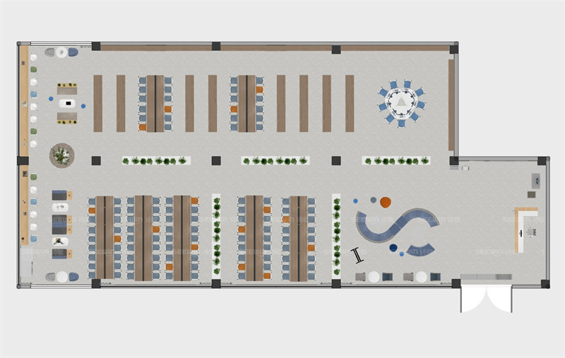 圖書館方案八-560㎡平面圖圖書館空間設計-閱覽區-圖書架-SEEWIN詩敏學校圖書館家具廠家上海詩敏教學設備有限公司|教學設備-科創教室-未來教室-無人機教室