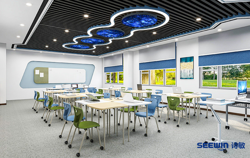 智慧教室空間設計-未來教室組合課桌-靈動組合課桌椅-SEEWIN詩敏學校家具上海詩敏教學設備有限公司|教學設備-科創教室-未來教室-無人機教室
